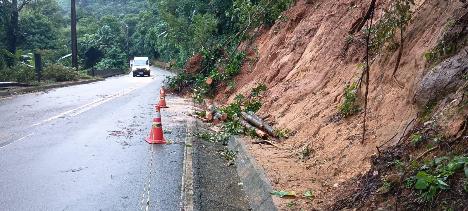Em São Paulo, a Tamoios tem trecho bloqueado; no Rio, queda de barreira levou ao fechamento total e depois liberação parcial da pista