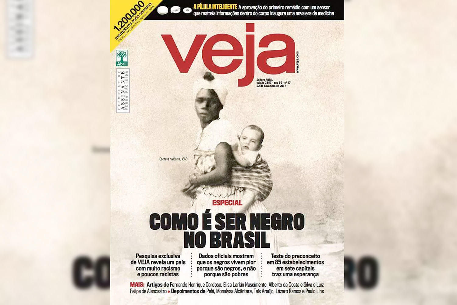 O racismo foi abordado em nove capas de VEJA, que completa cinquenta anos em setembro. A primeira reportagem, publicada no centenário da abolição da escravatura, em 1988, mostrava que os negros ainda viviam pior, ganhavam menos e morriam mais cedo que os brancos. Na edição especial sobre racismo, publicada em novembro de 2017, 29 anos após a primeira matéria, uma pesquisa exclusiva revelava que o Brasil era “um país com muito racismo e poucos racistas” e trazia dados oficiais que mostravam que os negros vivem pior “porque são negros, não porque são pobres”.
