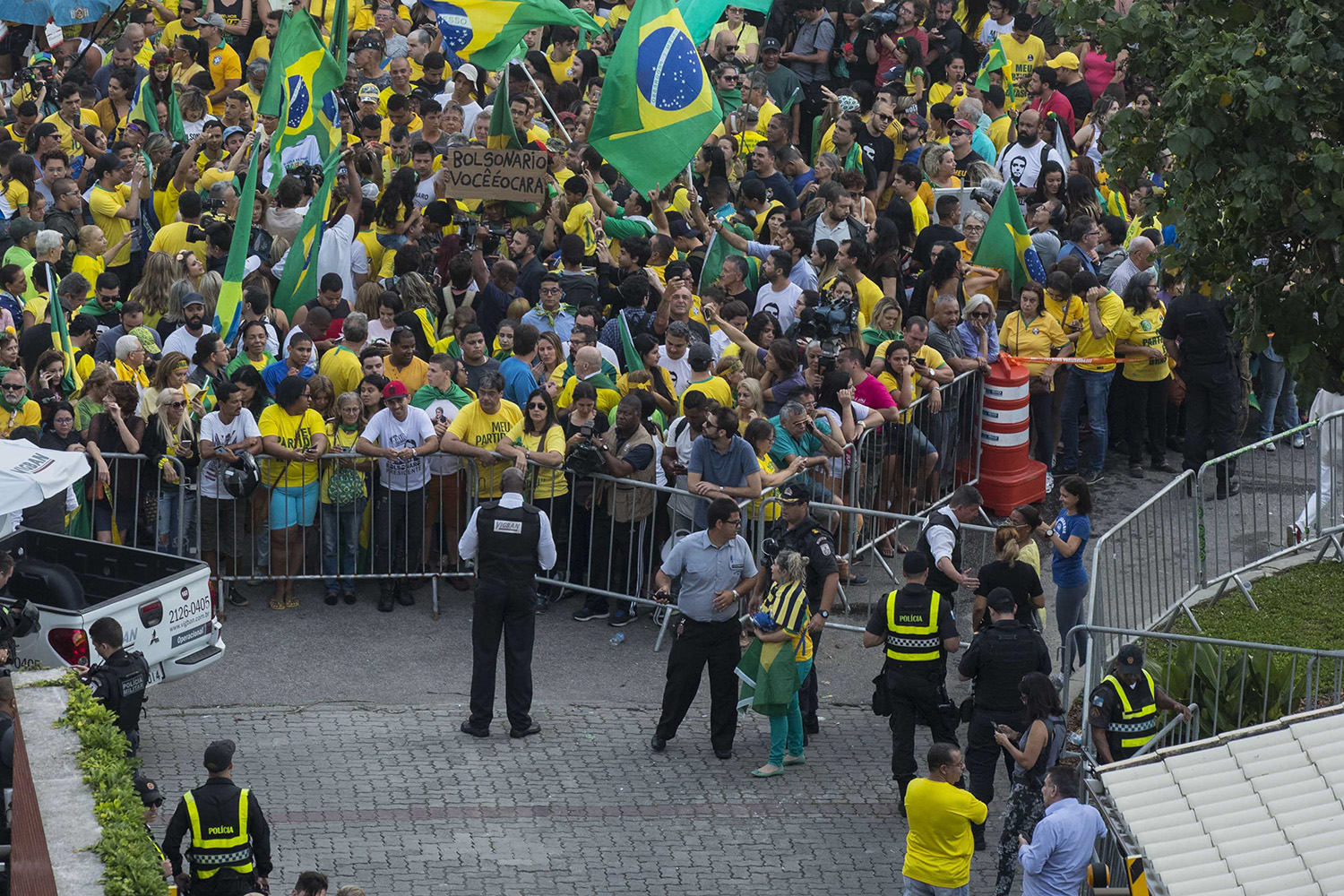 No Rio de Janeiro, uma multidão vestida de verde e amarelo está reunida na Avenida Lúcio Costa, na Barra da Tijuca, em frente ao condomínio onde mora Bolsonaro. Os apoiadores do capitão da reserva começaram a se concentrar no local desde o início da tarde.