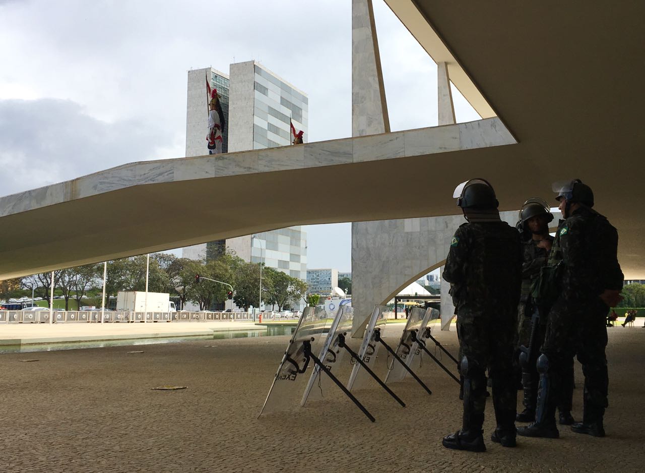 Dezenas de militares fardados e agentes vestidos de terno receberam armamento menos letal – escopetas carregadas com balas de borracha, cassetetes e cilindros portáteis com spray de pimenta. A preparação começou na noite de quarta-feira, depois da revelação de trechos da delação dos donos do frigorífico JBS – o presidente Michel Temer foi gravado por Joesley Batista dando aval a pagamentos para calar o ex-deputado Eduardo Cunha, preso e condenado na Operação Lava Jato. Temer negou o teor do diálogo.