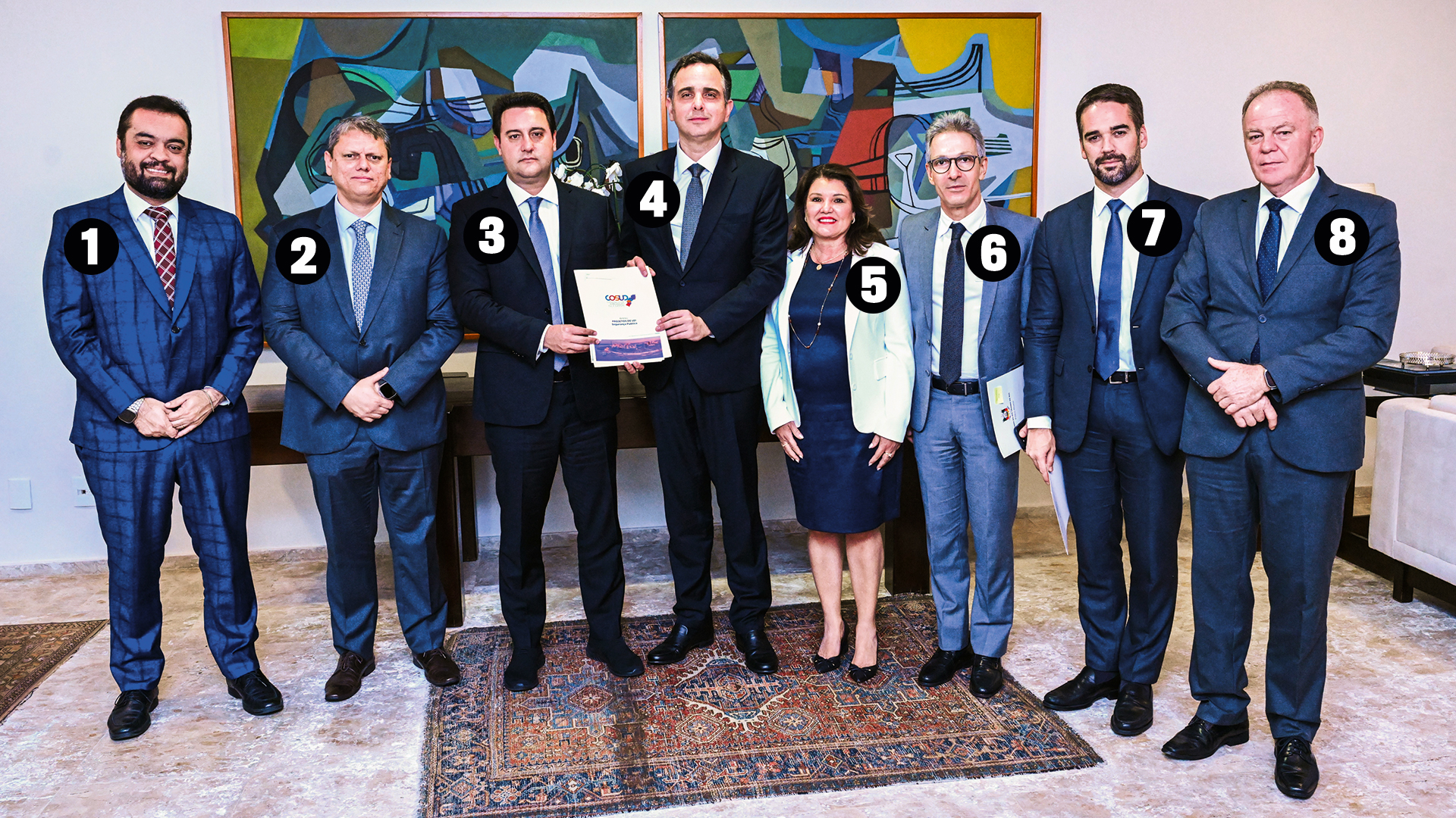 A maratona começou às 8h. Alinhados no discurso e na pauta, seis governadores e uma vice-governadora desembarcaram em Brasília na terça, 26, levando na bagagem demandas tributárias e projetos para combater a criminalidade. A primeira reunião foi no Ministério da Fazenda, onde foram recebidos para discutir o espinhoso tema da renegociação das dívidas dos estados com a União. De lá, a caravana partiu para as residências dos presidentes da Câmara e do Senado e terminou no Ministério da Justiça e Segurança Pública, com só uma parada extra: parte deles seguiu para um encontro fora da agenda para conhecer, em primeira mão, os resultados de uma nova pesquisa a respeito de cenários para a corrida de 2026 ao Palácio do Planalto e da popularidade do atual governo. O interesse por essa reunião é plenamente justificável. Com quatro potenciais presidenciáveis, o Consórcio de Integração Sul e Sudeste (Cosud) ganhou coesão e musculatura política, e tornou-se embrião de uma alternativa de centro para enfrentar Lula em 2026.