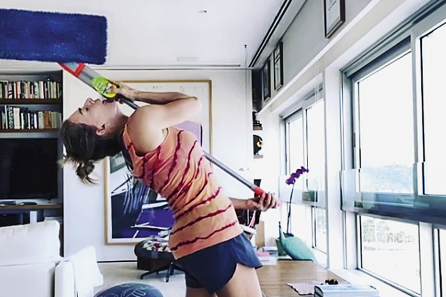Enquanto isso, na falta de viagens glamourosas, festas de arromba e comprinhas que pre-ci-sam ser compartilhadas, uma infinidade de fotos e vídeos postados nas redes sociais pelos isolados sociais estampa mãe, pai, filha e filho empenhados em alguma atividade do lar que, até pouco tempo atrás, só conheciam de ouvir falar. Com benefícios extras, inclusive. A atriz Juliana Paes publicou nos stories do Instagram um vídeo em que passa a vassoura na casa e filosofa: “Cheguei à conclusão de que varrer pode ser muito terapêutico. Uma coisa meio de ficar meditando”. Flavia, mulher do cantor Luciano Camargo, mostrou o marido lavando panos (não muito) sujos no tanque e aproveitou para exaltar seu caráter: com ele não tem “mi-mi-mi ou ego”. Moradora de um apartamento de 800 metros quadrados em Higienópolis, bairro nobre de São Paulo, a apresentadora Adriane Galisteu exibiu nas redes sociais bolhas e rachaduras nos dedos após limpar o banheiro. “Não fazia uma faxina havia dez anos”, disse a VEJA. “Estou só com um dos meus cinco ajudantes e dedico cada dia a deixar brilhando uma parte da casa: já limpei a academia, a sala de brinquedos. Estou até querendo consertar uns rejuntes”, brinca.