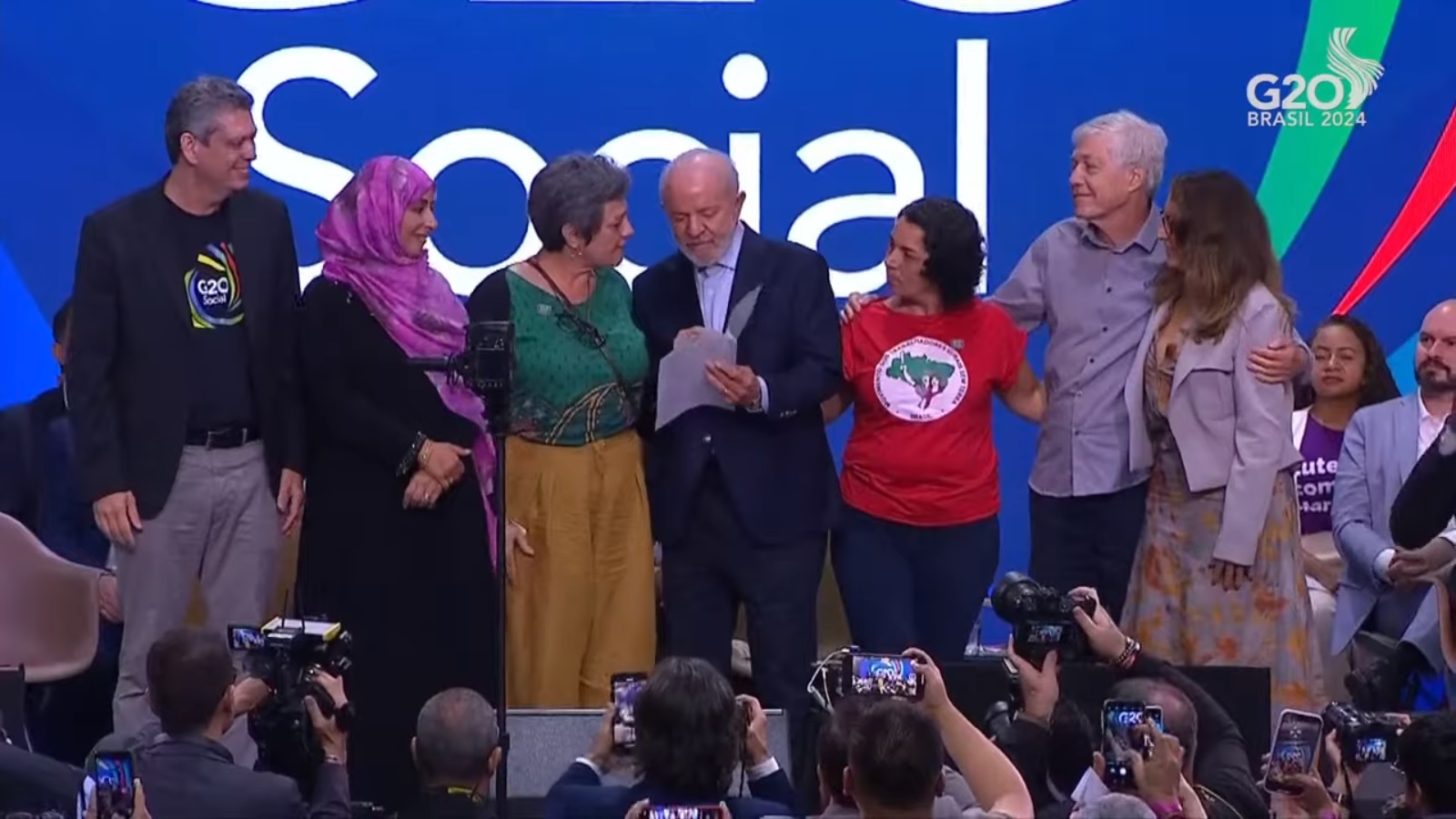 O documento de quatro páginas foi recebido pelo presidente Luiz Inácio da Lula da Silva durante a cerimônia de encerramento do G20 Social nesta manhã, no Rio de Janeiro.