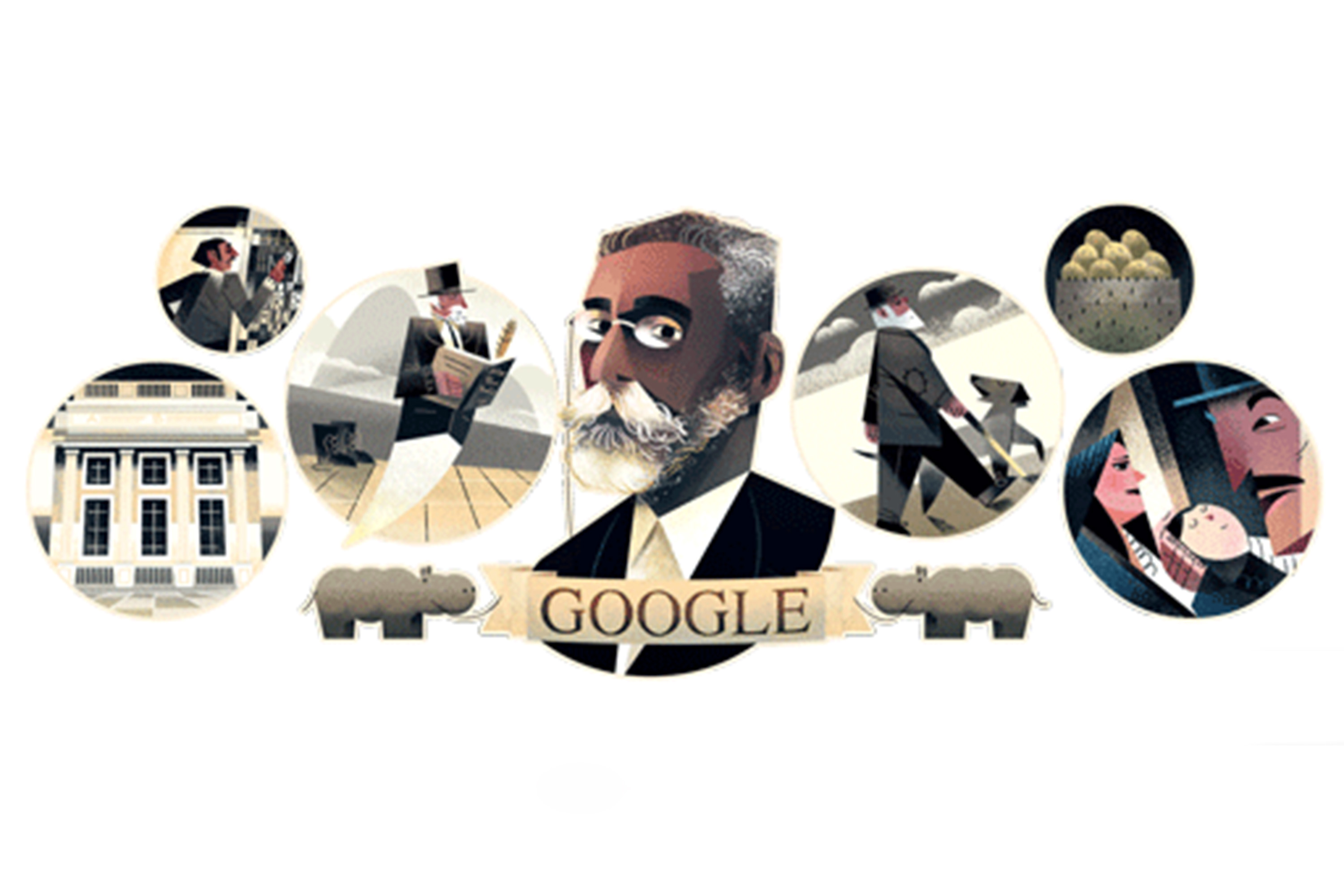 “Ele ficou conhecido por sua sagacidade e suas críticas esclarecedoras sobre a sociedade”, descreve o Google em sua homenagem. O doodle criado pela empresa ilustra alguns de seus trabalhos mais conhecidos e considerados obras-primas até a atualidade – Quincas Borba, Dom Casmurro e As Memórias Póstumas de Brás Cubas.