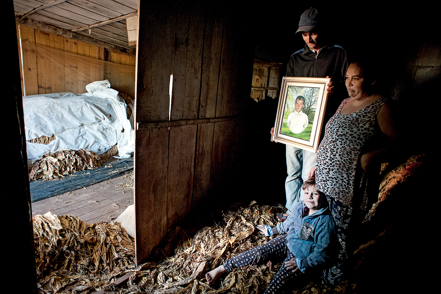 O recorde da década deu-se em 2011, quando 34 pessoas tiraram a vida em Santa Cruz, nove das quais eram fumicultores — um número que projeta 76 suicídios anuais por grupo de 100 000 pessoas ligadas à plantação de fumo. A mais jovem vítima naquele ano foi Angélica Vargas de Oliveira. Era uma adolescente linda e simpática, de 16 anos, que queria ser policial militar. Enforcou-se perto da escola em Monte Alverne. Os pais da jovem abandonaram o plantio de fumo, deixaram a velha morada e cuidam de um mercadinho de beira de estrada onde jovens se reúnem no fim da tarde de domingo para beber e jogar sinuca. “A gente veio pra cá para ver se esquecia”, diz o pai, Sebastião Francisco de Oliveira, de 63 anos. “Mas não esquece.” A menina o ajudava desde criança na lavoura de fumo, mas não se descuidava dos estudos, como mostram os boletins dos quais a mãe nunca se desfez. “Ela só tirava notas altas”, orgulha-se Maria Leoni de Vargas, de 57 anos.
