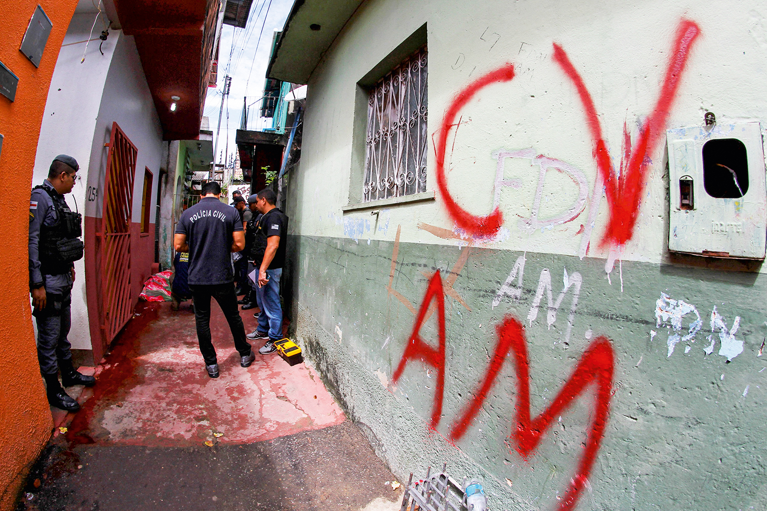 Em fevereiro de 2020, uma mensagem de voz viralizou nos celulares da bandidagem em Manaus. “Vermelhou, mano. Vermelhou.” Fogos de artifício foram ouvidos e vistos em toda a cidade, enquanto homens armados saíam às ruas pichando as iniciais do Comando Vermelho em casas, prédios, escolas e igrejas. Algumas inscrições cobriam menções à facção local Família do Norte, em um aviso à população de que o crime organizado estava sob nova direção. De lá para cá, enquanto os amazonenses sofriam duas ondas devastadoras de Covid-19, a organização criminosa nascida na década de 70 no Rio de Janeiro (a primeira do Brasil a ser reconhecida como tal e a firmar parcerias com grupos criminosos internacionais) consolidava o seu poder na principal cidade da fronteira norte do país — segundo a Polícia Civil, eles controlam 95% das áreas sob influência do crime, hoje chamadas de “zonas vermelhas”. Em vez de ocupar morros, agora o grupo avança sobre bairros pobres e violentos às margens do Rio Negro, por onde pode embarcar a droga e fugir rapidamente da polícia.