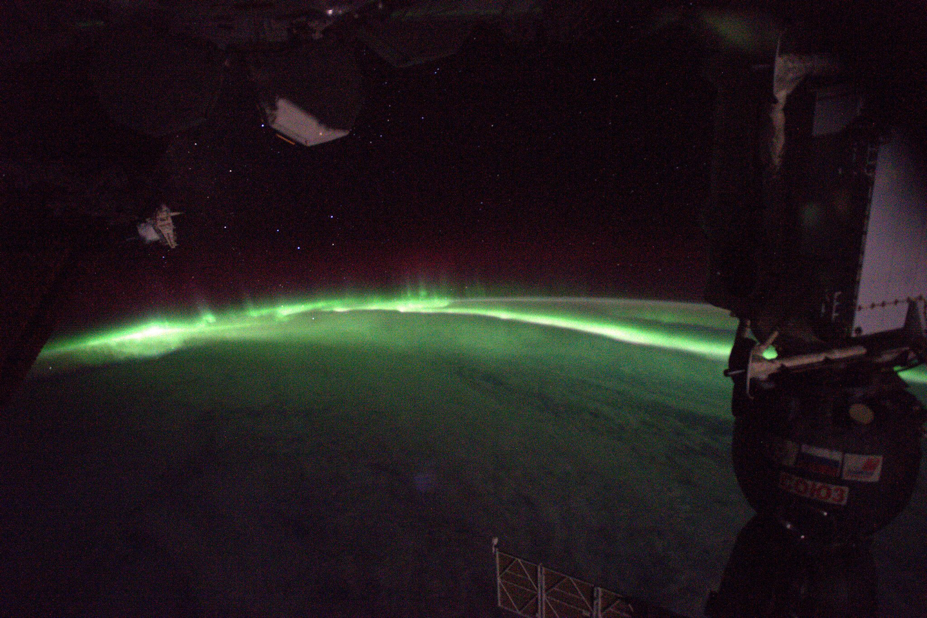 Aurora boreal fotografada por Pasquet da Estação Espacial Internacional (ISS, na sigla em inglês), no sábado (@thom_astro/Twitter)