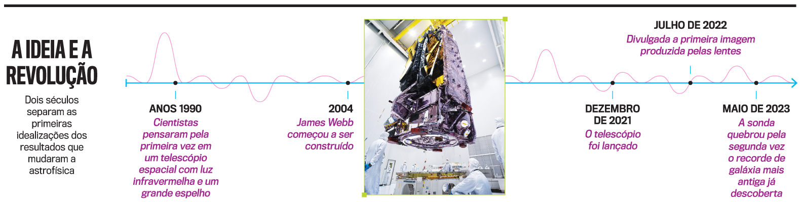 Revelações sobre os primórdios do universo são o feito de maior impacto até agora entre as muitas descobertas captadas pelo James Webb. Desde as primeiras imagens, enviadas em julho de 2022, o telescópio confirmou o que se previa: que sua trajetória seria um divisor de águas na astrofísica. “Mesmo com parte do espelho danificado por um meteorito, a qualidade da imagem capturada se mostrou muito superior ao esperado”, afirma o astrofísico brasileiro Christopher Willmer, professor da Universidade do Arizona, nos Estados Unidos. Em pleno funcionamento, o telescópio mais poderoso já construído pelo homem, capaz de reproduzir um infinito antes invisível, descortinar planetas em estrelas distantes e revelar segredos dos primórdios do universo, tem suas descobertas esmiuçadas em uma série de estudos publicados nos últimos meses.