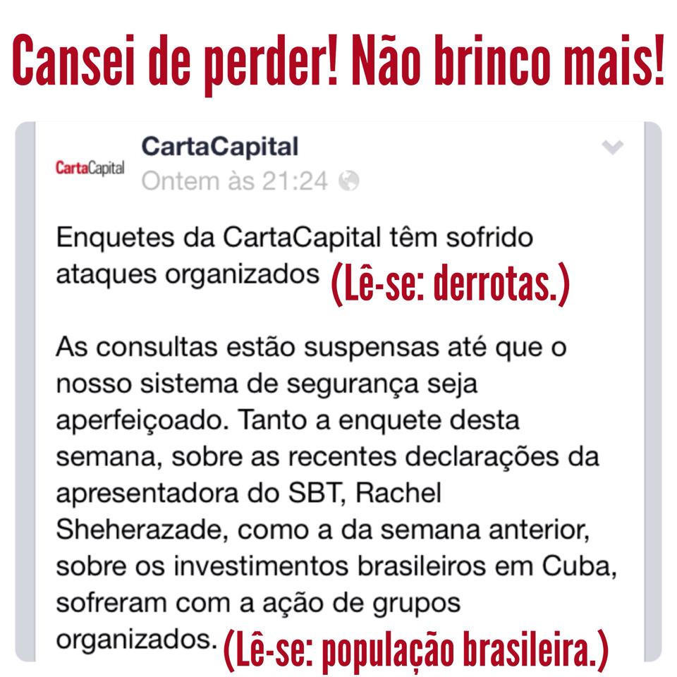 Os editores responsáveis pela enquete da Carta Capital são como aquelas crianças que, quando estão perdendo o jogo, no mínimo furam a bola.