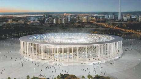 Uma tragédia acaba de acontecer no canteiro de obras do estádio Mané Garrincha, em Brasília. A viga central que sustentava uma laje cedeu e feriu cinco operários. Há possibilidades de vítimas fatais. Pelo menos um operário está soterrado.