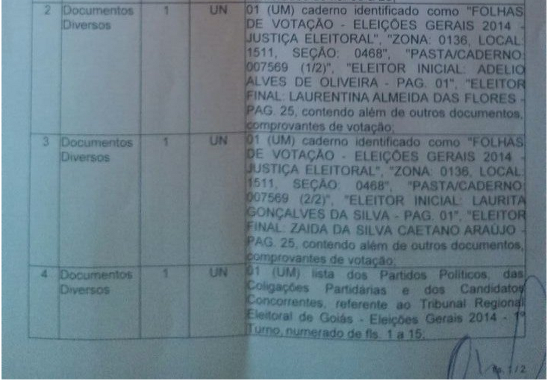 O jornal “Diário de Goiás” publicou uma reportagem a respeito do caso no dia 12 de outubro. Robson Ronne Brandão Rezende, que mora no conjunto Cidade Vera Cruz II, em Aparecida de Goiânia, em Goiás, encontrou num lixo uma sacola plástica com os seguintes documentos referentes à disputa eleitoral no primeiro turno:
