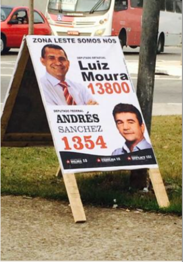 Poucas coisas são tão detestáveis como a mistura entre futebol e política. Quase sempre, trata-se de uma trapaça: busca-se usar em favor de uma atividade — a política — a popularidade obtida na outra, o futebol, como se fossem atividades da mesma natureza. E, obviamente, não são. Vejam esta foto, que me foi enviada por um leitor da Zona Leste de São Paulo.