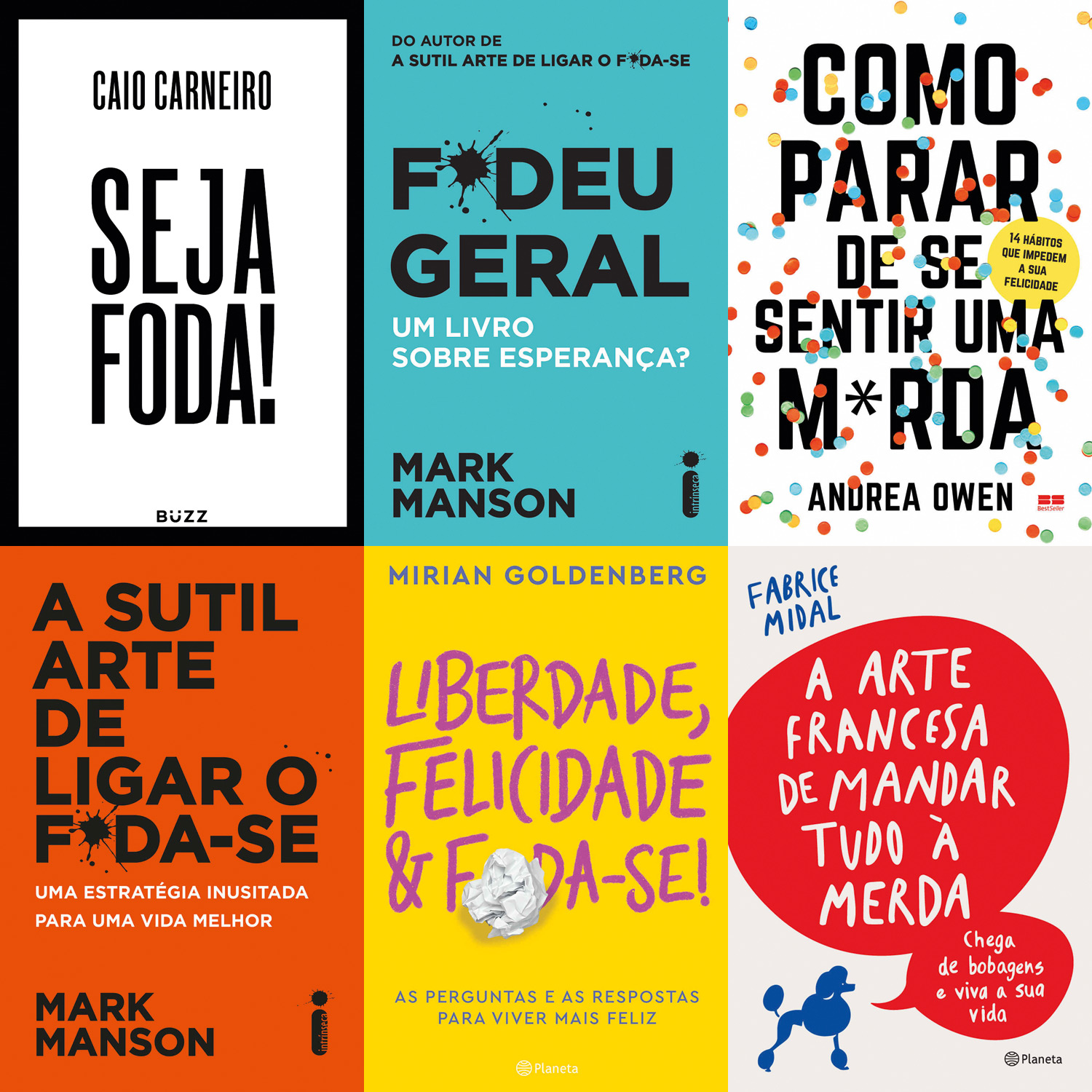O verbo utilizado em uma enorme variedade de situações que nada têm a ver com seu sentido original não é a única medalha a figurar no panteão dos títulos desbocados: Como Parar de Se Sentir uma M*rda, estocada nas mulheres “autodestrutivas” escrita pela life coach americana Andrea Owen, e Resolva a P*rra dos Seus Problemas, em que Laura Jane Williams ensina o leitor a focar as coisas “que realmente importam”, também estão vendendo muito bem, obrigado. “O título precisa saltar à vista, entre tantas obras do gênero. Além disso, o palavrão soa moderno e atrai um público que, em geral, torce o nariz para a autoajuda clássica”, diz Raïssa Castro, editora executiva da Best Seller.