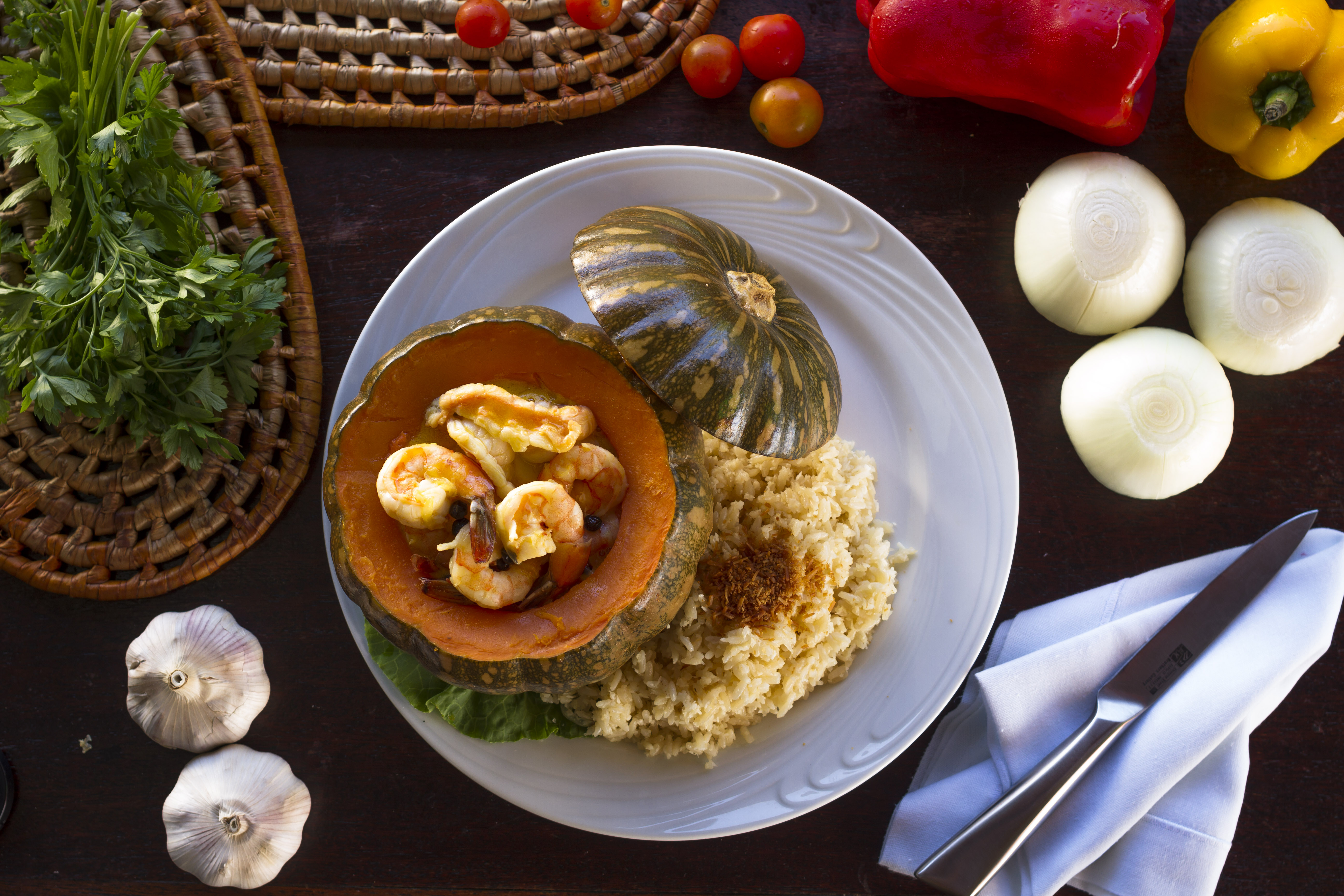 Uma tonelada de jerimum. Eis a quantidade do ingrediente que o chef César Santos costuma utilizar todos os meses em seu restaurante aos pés da Igreja Nossa Senhora do Amparo, em Olinda. Especialidade da casa, ele é servido inteiro com dezessete variedades de recheio, sempre para duas pessoas. No topo do ranking de pedidos figura o que leva camarão e lagostim ao molho de maracujá (R$ 179,00), seguido de perto pelo de charque ao coco (R$ 89,00). Ambos são finalizados com requeijão e entregues ao lado de arroz. Torce o nariz para o fruto? O cardápio lista dezenas de outras receitas, também para duas pessoas, como baião de dois com camarão, lagostim, peixe e polvo puxados no leite de coco (R$ 194,00) e moqueca de peixe, camarão, frutas e verduras (R$ 152,00). Para petiscar, uma pedida sem erro são as tiras de carne de sol aceboladas com macaxeira frita (R$ 48,00), boa companhia para a caipifruta, união de vodca, gelo e quatro tipos de fruta (R$ 26,00, com vodca importada). Vale guardar espaço para provar a ótima sobremesa batizada de baba de moça com quero mais neguinho, junção de doce de coco-verde, sorvete de tapioca, cocada preta e bolinhos de goma (R$ 24,00).