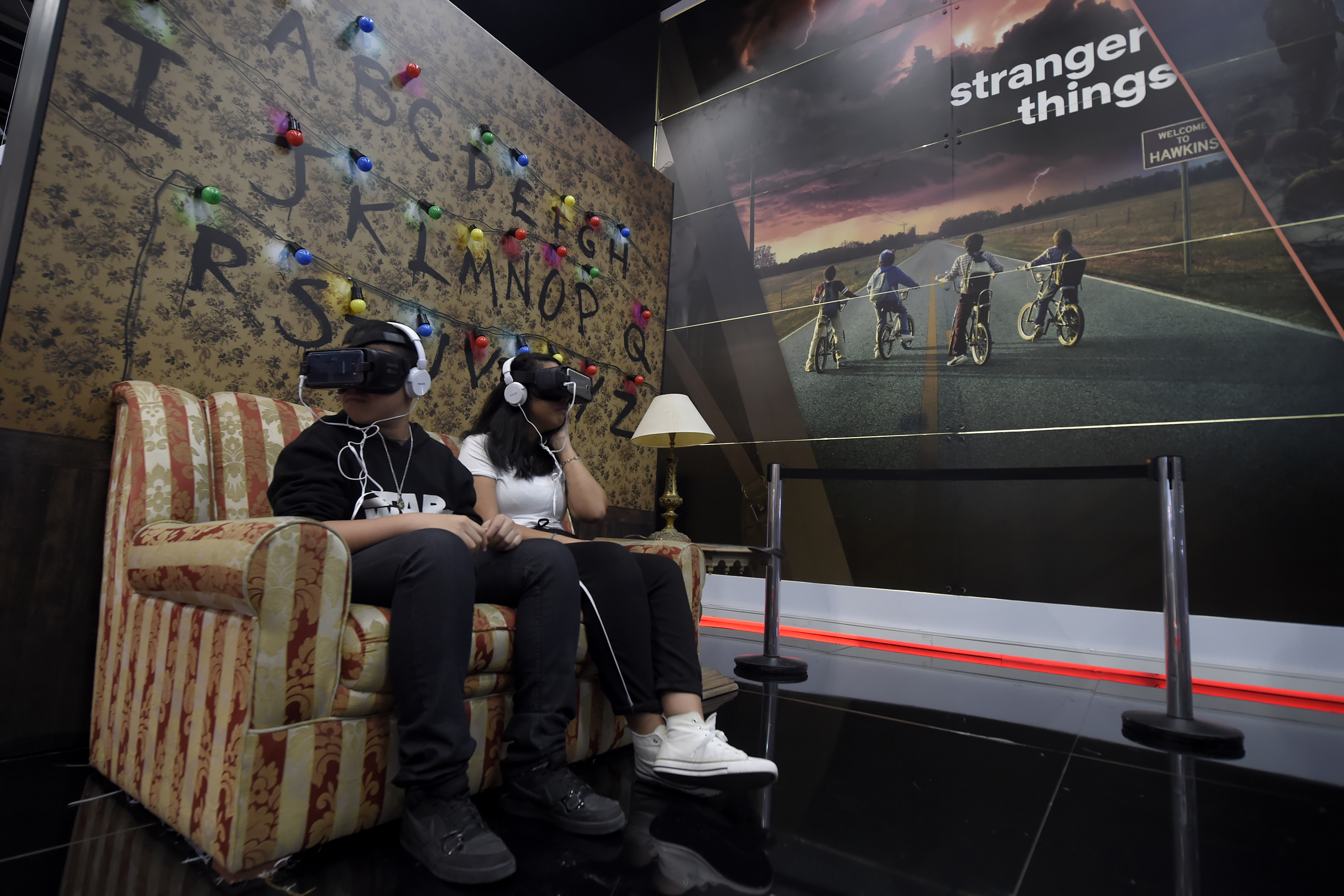 Bem maior que nos outros anos, o disputado estande da Netflix recriou o ambiente de diversas de suas produções originais, como Star Trek: Discovery, Jessica Jones e a por estrear Altered Carbon. As filas — sinônimo de sucesso — no entanto, estavam em torno da sala da casa dos Byers de Stranger Things, onde é possível sentar no sofá e ver o Demogorgon com óculos de realidade aumentada. Também dá pra se divertir na máquina de brinquedos, tentando agarrar um porquinho de pelúcia do filme Okja.