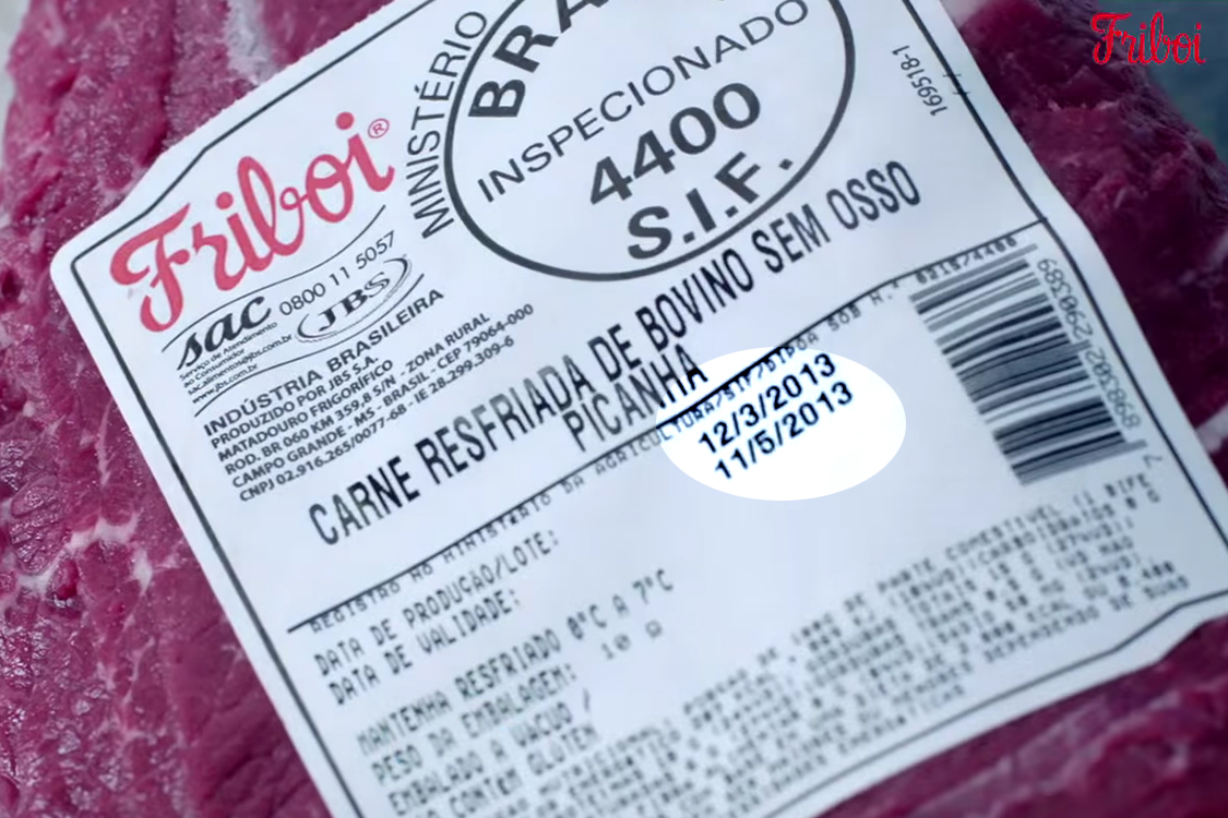 Com o título “JBS: Qualidade é prioridade”, uma rápida cena causou controvérsia na internet: uma peça de carne parece ter como data de validade maio de 2013.