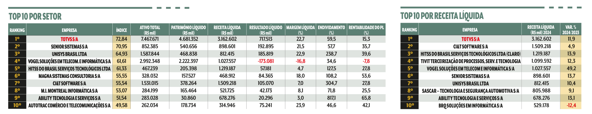 Em um cenário desafiador para a renda variável, com a Selic elevada e incertezas de toda ordem, os investidores redobram a atenção com as empresas que conseguem navegar bem nesse ambiente. A empresa de tecnologia da informação Totvs é um desses casos. No primeiro semestre , as ações da companhia figuraram entre as dez de melhor desempenho do Ibovespa, o principal índice da B3. De janeiro a outubro, suas ações já acumulavam valorização de cerca de 60%, três vezes o ganho médio do mercado. O movimento tem explicação: a Totvs entrega resultados sólidos e inspira confiança quanto ao futuro, um ativo escasso nos tempos atuais. “O modelo de negócios é muito sólido e tem uma narrativa de crescimento para os próximos cinco anos”, afirma Maria Clara Infantozzi, analista de tecnologia do Itaú BBA.