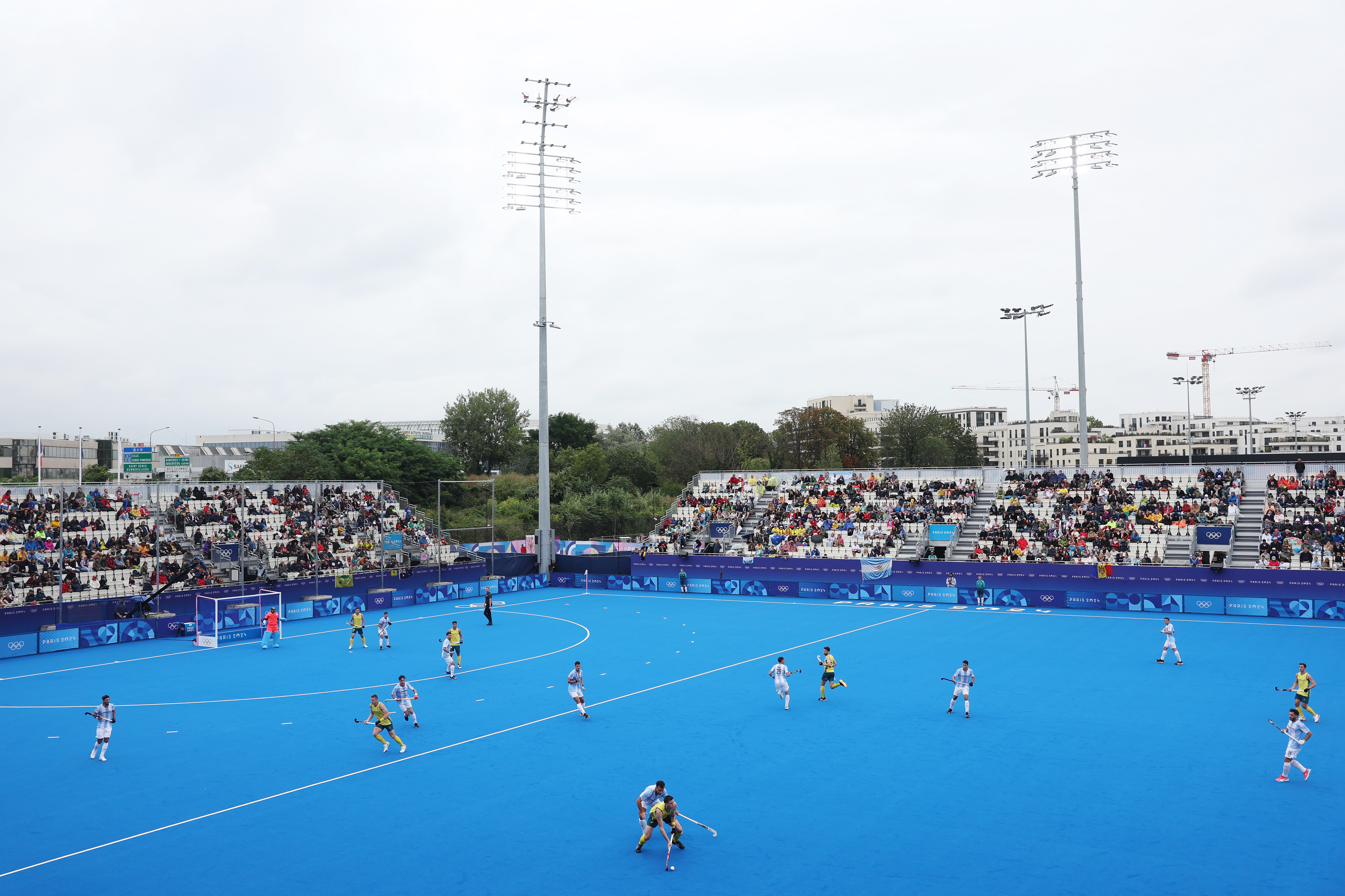 • O tempo passa devagar, devagarinho, em Colombes, comuna ao norte de Paris – e, no entanto, lá se vão 100 anos. O estádio Yves-du-Manoir será sede das partidas de hóquei sobre a grama. Na partida inaugural, a Grã-Bretanha venceu a Espanha por 2 a 0. Ao redor, das janelas de prédios populares, os moradores tentam alcançar algum tico do campo. Pelas grades, olhares curiosos tentam roubar alguma imagem da instalação. Numa quadra de basquete, meninos enterram as bolas como se mais nada houvesse.