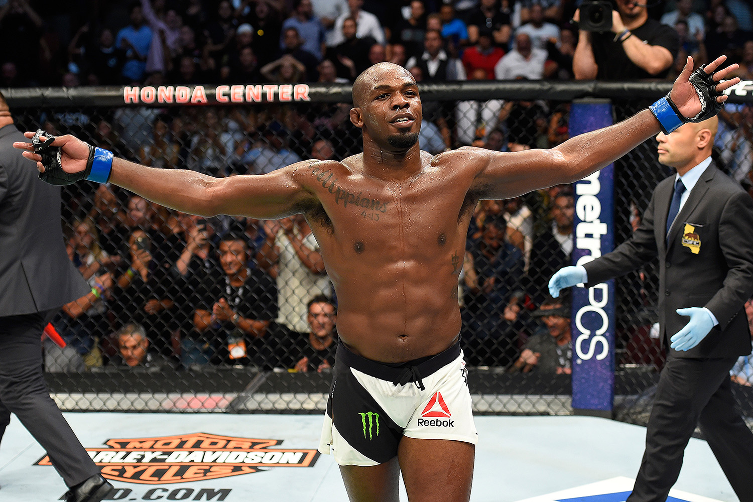 Em 2015, o exame de Jones deu positivo por uso de cocaína. No ano seguinte, ele foi suspenso por um ano por testar positivo para clomifeno. Segundo o site MMA Fighting, Jones ficou desolado e está recebendo apoio de sua equipe, que ainda tenta entender como ocorreu. Comprovado o doping, Jones deve perder o cinturão.