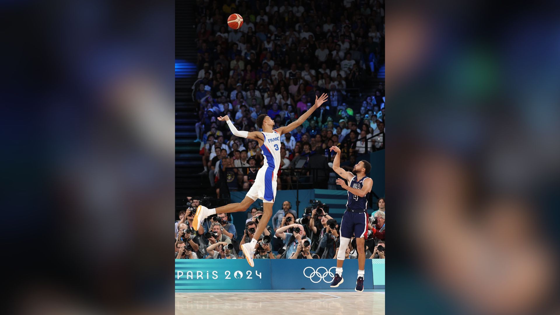 Os minutos mais espetaculares da história do basquete olímpico resumido na foto do balé de Curry contra Wembanyama