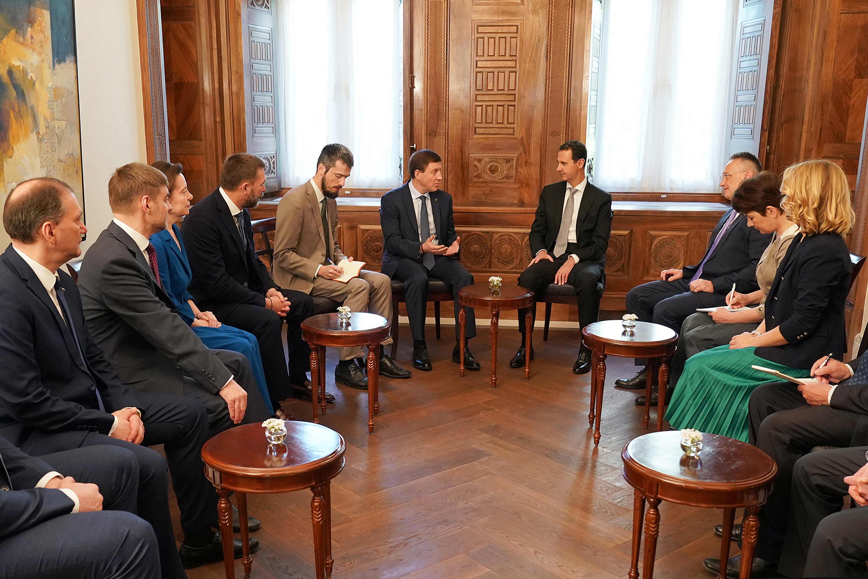 “O presidente sírio vê neste ataque uma agressão e nós partilhamos da sua posição”, disse o deputado russo Sergei Zheleznyak à agência de notícias TASS. A percepção geral dos deputados é de Al-Assad estava “de bom humor e com vontade de continuar o seu trabalho em Damasco”. Durante a reunião, elogiou ainda as defesas antimíssil da Rússia, que ajudaram a repelir alguns dos disparos da madrugada de sábado. Uma fonte do exército russo disse que esses mesmos mecanismos tinham conseguido interceptar e destruir 71 dos 105 mísseis lançados pelos norte-americanos, britânicos e franceses mas o Pentágono reforçou no sábado à tarde que todos os alvos previstos foram atingidos e que a missão cumpriu o seu objetivo.