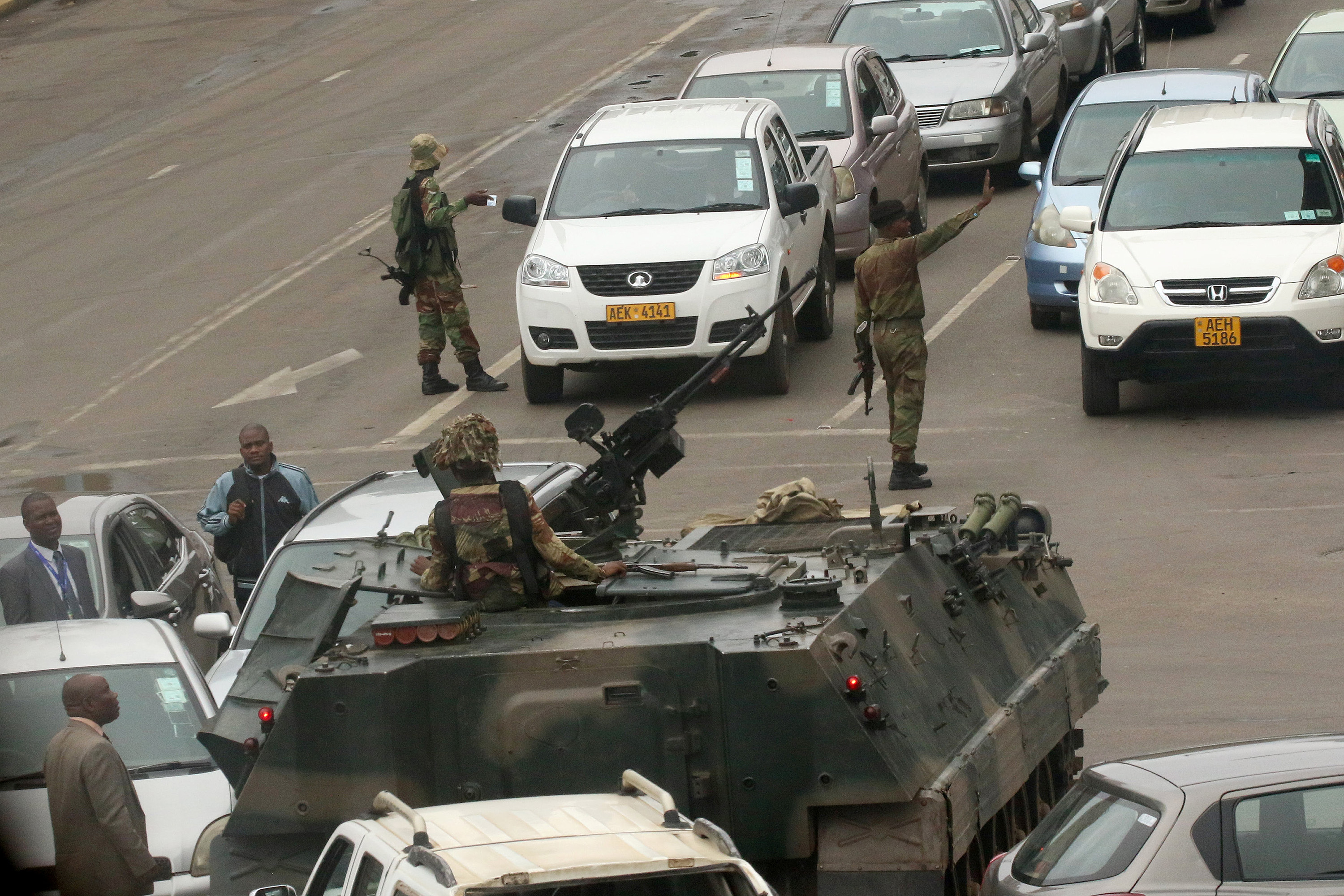 De acordo com o militar, a atuação é contra o establishment político do país, mas não há intenção de depor Mugabe, no poder desde 1987. “Nós queremos deixar muito claro que essa não é uma tomada militar do governo”, afirmou o general Sibusiso Moyo no estúdio, em roupas de combate. “O que as Forças de Defesa do Zimbábue fazem é pacificar uma situação política, social e econômica degenerada em nosso país.”