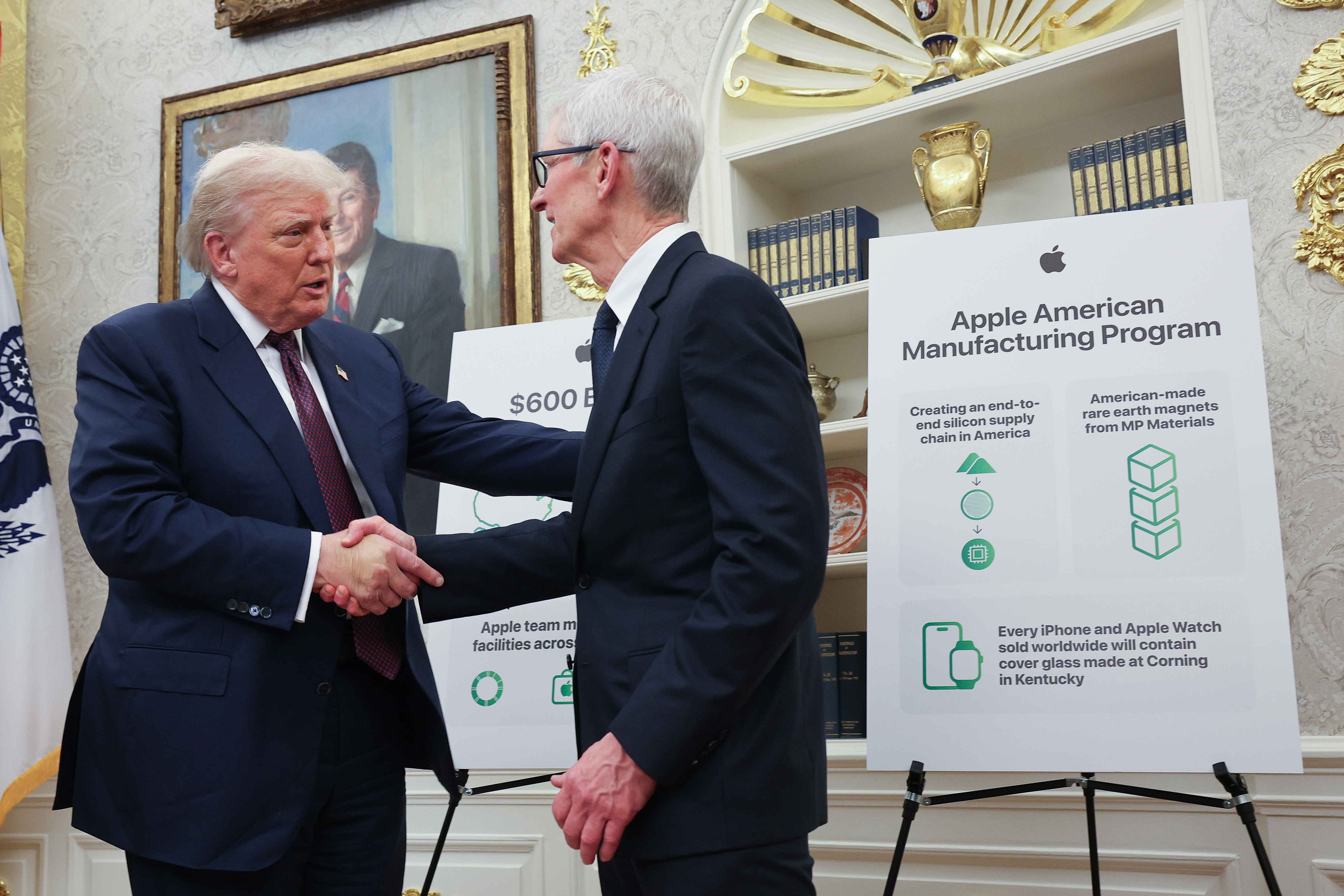A primeira empresa a se beneficiar de uma boa relação com Trump foi a Apple, ainda no primeiro mandato do republicano. Na quarta-feira, 6, o presidente anunciou, ao lado de Tim Cook, o investimento de mais de 100 bilhões de dólares para que a empresa fabrique partes do iPhone em território americano.