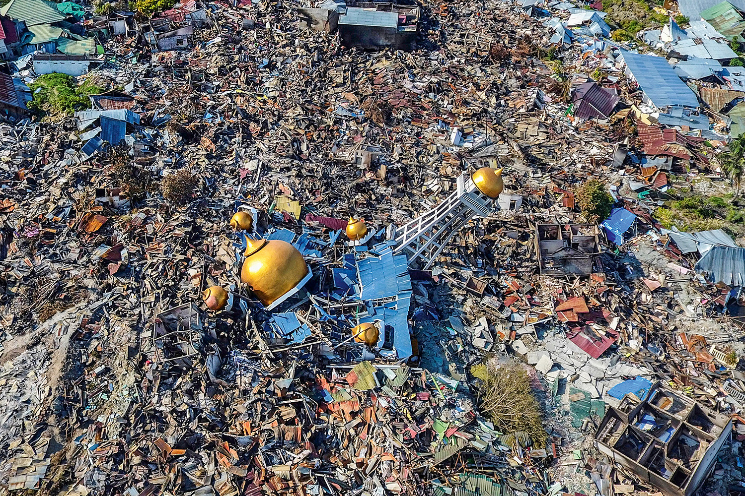• No bairro de Balaroa, na cidade de Palu, na Indonésia, a paisagem costumava ser dominada por uma mesquita com domos dourados. Na sexta-feira 28 de setembro, pouco antes da reza noturna, um grupo de crianças se juntou nesse templo para recitar o Corão. Perto das 6 horas da tarde, um terremoto de magnitude 7,5 na escala Richter sacudiu o chão, e ondas de até 6 metros de altura invadiram as ruas. O edifício da mesquita se desfez, soterrando os pequenos, e se deslocou 30 metros para o lado. Moradores disseram que, por dois dias, ouviram gritos de socorro vindos de debaixo dos escombros, mas não conseguiram ajudar. Árvores caídas e pedaços de telhados pareciam fazer crer que o bairro todo tinha sido colocado dentro de um liquidificador gigantesco. De cima, só os domos dourados da mesquita podiam ser reconhecidos em Palu. Situada no Círculo do Fogo, a Indonésia é uma das nações mais açoitadas por terremotos e maremotos. Na quarta-feira da semana seguinte, um vulcão entrou em erupção. O país foi um dos mais atingidos pelo devastador tsunami que varreu o Sudeste Asiático no Natal de 2004. Daquela vez, o tremor alcançou magnitude 9 na escala Richter e 200 000 perderam a vida. Desde então, a região já registrou sete grandes terremotos. Por se tratar de um arquipélago com 17 000 ilhas, um dos fatores determinantes para prever o grau da tragédia é se o epicentro acontece em terra ou no mar. Em agosto, tremores em terra deixaram entre 130 e 430 mortos. Desta vez, falava-se em 1 424.