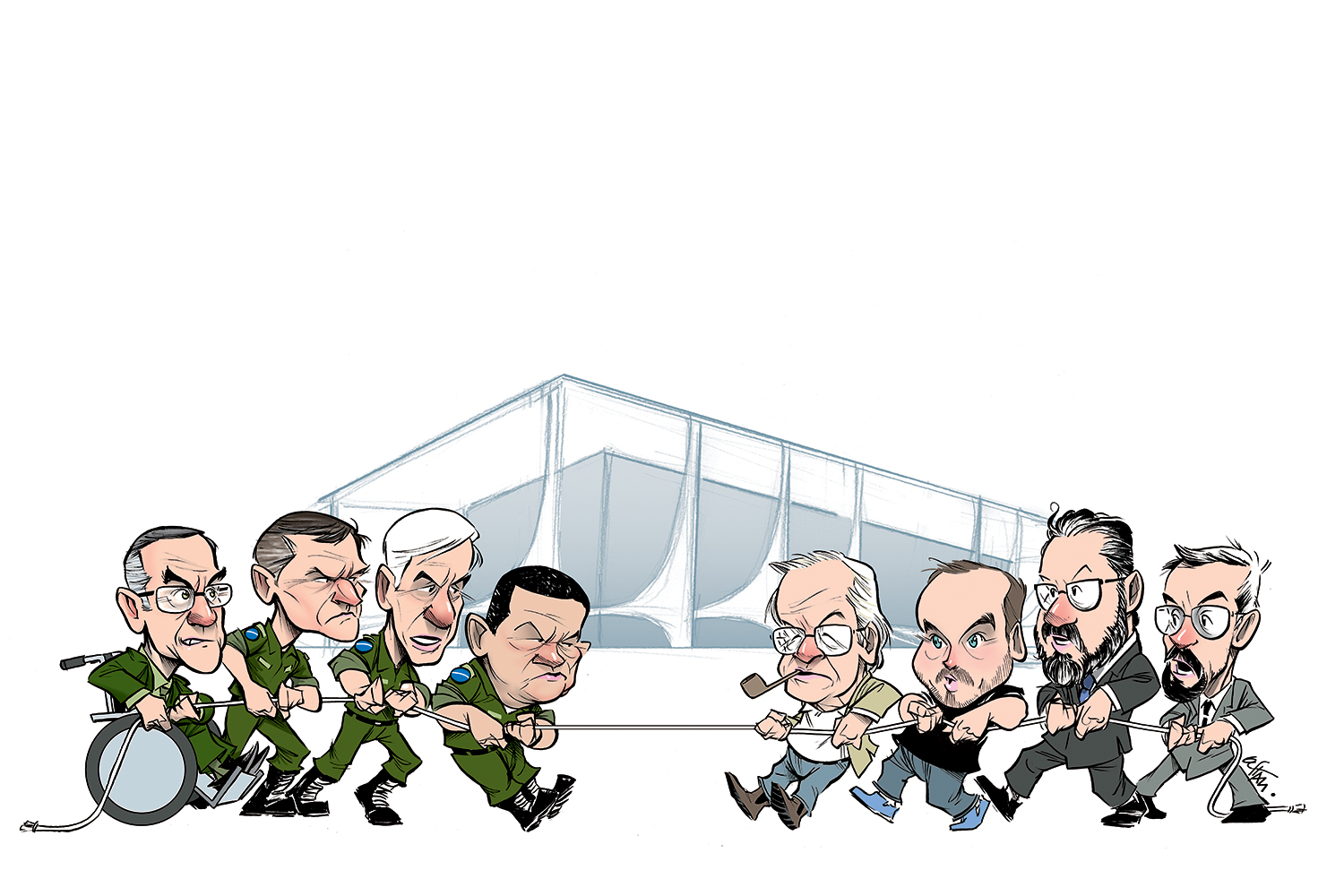 Na disputa que vem desestabilizando o governo, os militares entendem que Olavo é uma força do extremismo político, enquanto o guru e seguidores acham que os militares são excessivamente dóceis com os esquerdistas infiltrados nas universidades, nas escolas, na Igreja, na produção cultural, na imprensa e até mesmo nas Forças Armadas. Por isso, a disputa de poder entre os dois grupos, que já se dava nos bastidores desde a formação da equipe de governo, agora se transformou num clássico cabo de guerra. Olavo se move pela convicção de que os generais querem enfraquecer Bolsonaro a ponto de forçá-lo a transferir o poder ao vice-presidente Hamilton Mourão. O primeiro militar a entrar na mira foi o próprio vice-­presidente, acusado de ser “virtual golpista”, “charlatão desprezível” e “idiota” por supostamente desqualificar Bolsonaro e se aproximar de esquerdistas e opositores.