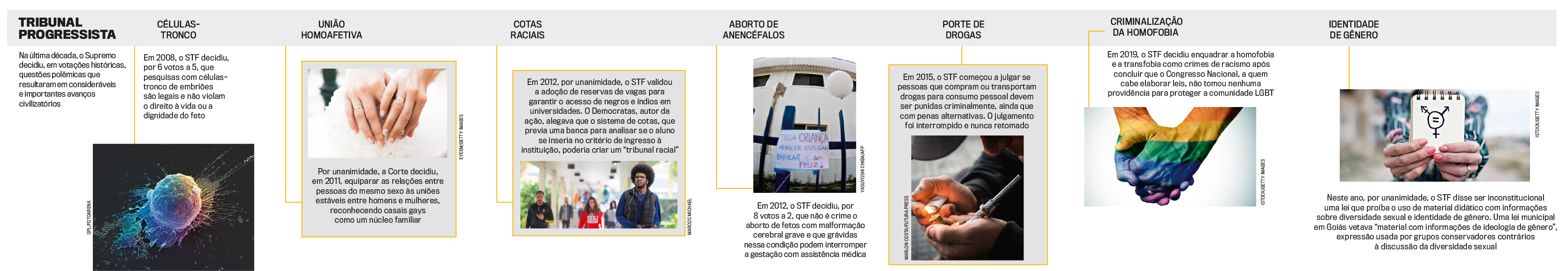Indicado ao Supremo pela então presidente Dilma Rousseff, o ministro Luís Roberto Barroso é conhecido pela capacidade de formar opinião dentro e fora do tribunal. Ele votou, por exemplo, pela descriminalização do porte de maconha para uso pessoal e pela descriminalização do aborto até três meses de gestação, medidas que são rechaçadas pelos bolsonaristas. O que Bolsonaro chama de pauta progressista tem, de fato, avançado no STF. Nos últimos dez anos, o tribunal chancelou a união civil entre pessoas do mesmo sexo, o aborto em casos de bebês com malformação cerebral, a validade das cotas raciais em universidades e a criminalização da homofobia. Todos, aliás, importantes avanços civilizatórios (veja o quadro na pág. 32). Com a indicação dos substitutos de Celso de Mello, neste ano, e de Marco Aurélio Mello, no ano que vem, o presidente quer levar o pêndulo para o outro lado. O seu lado. “Os parlamentares de esquerda usaram por anos, e seguem usando, o Supremo como instrumento político por saberem de suas posturas progressistas. Eles judicializam principalmente as pautas conservadoras criando um atalho, de modo a imobilizar o Parlamento, como aconteceu no caso do casamento homoafetivo”, afirma o deputado Marco Feliciano (Republicanos-SP), amigo do presidente e expoente da bancada evangélica.
