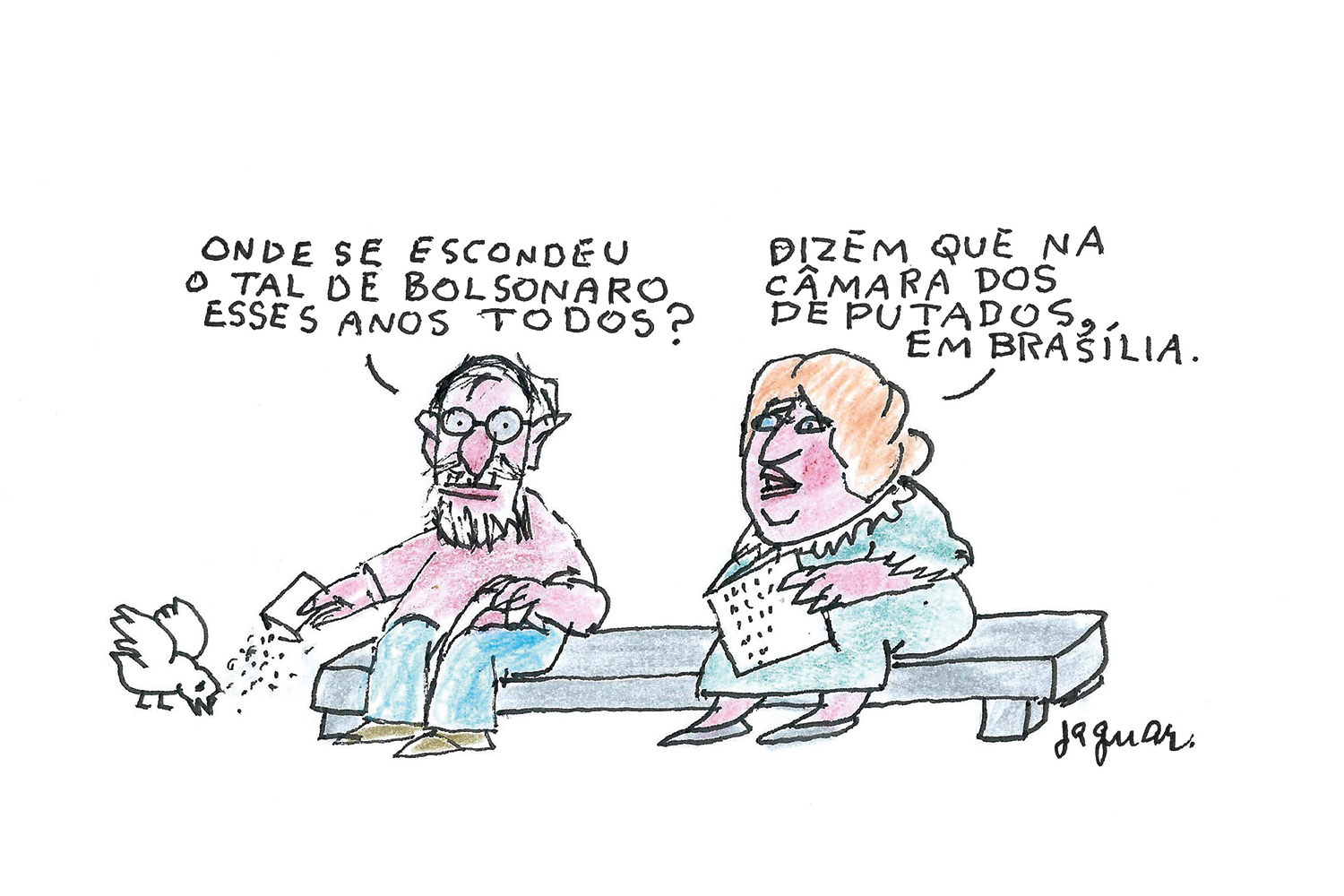 “Onde se escondeu o tal de Bolsonaro esses anos todos?”, pergunta um homem de olhar assustado, sentado num banco de praça pública, na charge de Jaguar publicada na Folha de S.Paulo do último dia 19. Sentada no mesmo banco, uma mulher responde: “Dizem que na Câmara dos Deputados, em Brasília”. As pesquisas feitas antes do primeiro turno ainda apontavam vida dura para o ex-capitão nas projeções para o segundo turno: empate técnico com Haddad e derrota para Ciro Gomes e, até certa altura, mesmo para Geraldo Alckmin. Já as pesquisas posteriores indicariam considerável vantagem para Bolsonaro, mostrando que o tsunami continuava em expansão. Tão vigorosa se revelou a onda Bolsonaro que produziu filhotes nos estados. “Onde se escondeu o tal de Witzel esses anos todos?”, perguntaria com maior razão ainda o personagem de Jaguar, sentado num banco à margem do calçadão de Ipanema. “Onde se escondeu o tal de Zema esses anos todos?”, replicaria o similar mineiro, num banco da Praça da Liberdade. Bolsonaro já forneceu muito pano para manga e mais ainda fornecerá. Que diabos se deu na sociedade? Por que Bolsonaro, e não outro, mais razoável? Em torno dessas perguntas, nos parágrafos seguintes, arriscaremos tatear em meio à bruma.