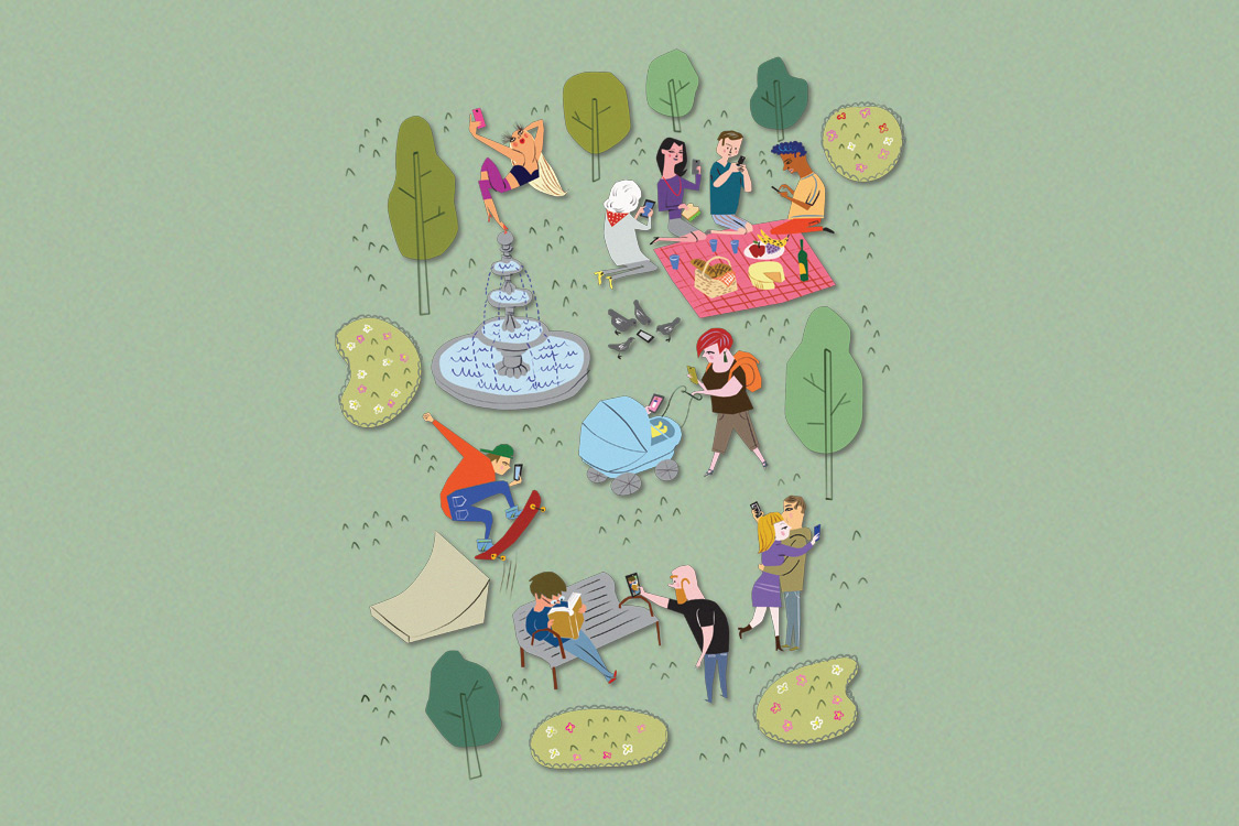 “Ao experimentarem menos a sensação de sair sozinhos, eles também experimentam menos o gosto da independência que depois vão encarar como adultos, de tomar as próprias decisões, sejam elas ruins ou boas”, analisa a pesquisadora. No entanto, se os jovens têm festejado pouco e também não se dedicam com afinco às lições de casa, adivinhe com que eles vêm gastando tempo. Claro: com celulares, redes sociais, WhatsApp, web, videogame e outras tecnologias contemporâneas. Geralmente, em países desenvolvidos, como os Estados Unidos, oito em cada dez têm um smartphone. Um típico filho da Geração I — chamada pela autora de iGen justamente por seus integrantes já haverem crescido com celular próprio (o iPhone foi lançado em 2007) e viverem conectados a Facebook, Instagram e cia. — consulta cerca de oitenta vezes por dia esse tipo de aparelho. Ao todo, ele passa cerca de quatro horas diárias vidrado nele. Se forem contados o período na escola, o de sono e ainda o focado em outras tecnologias, como computadores, tablets e videogames, praticamente não lhe sobrará tempo algum para atividades como interações off-line com os amigos.